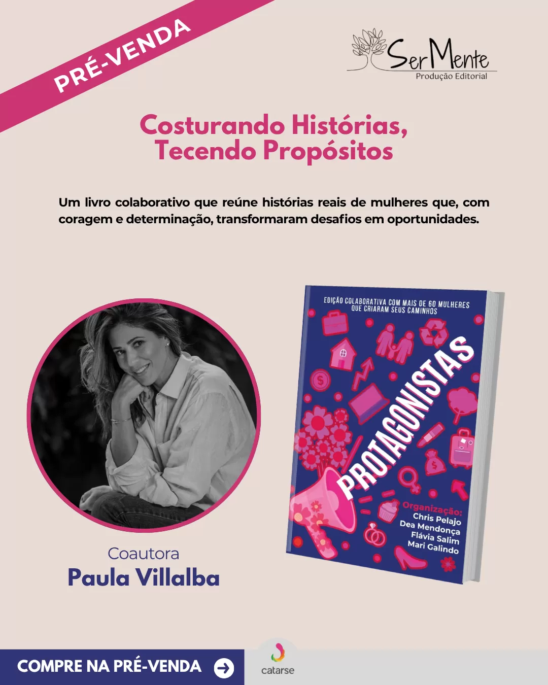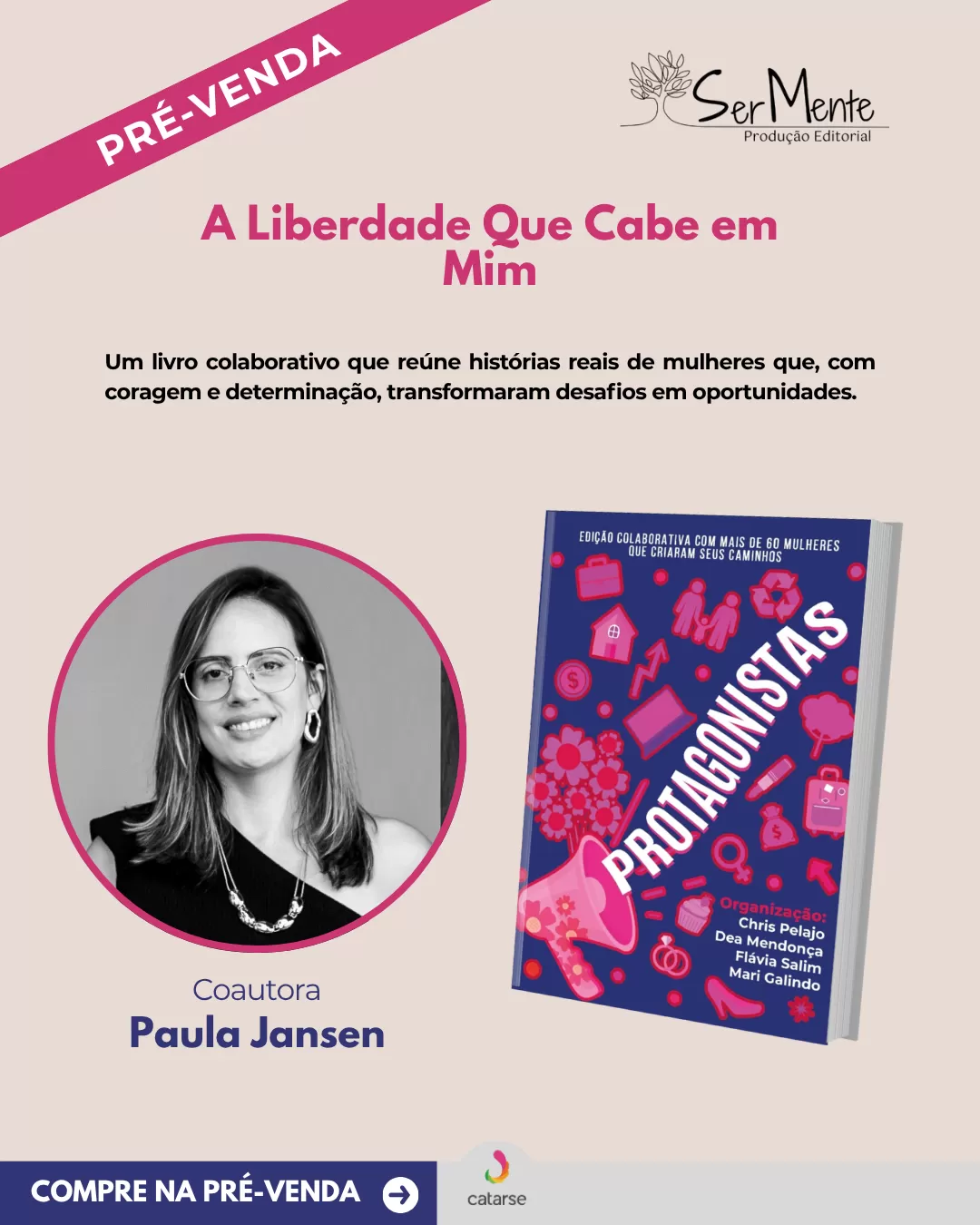 Garanta seu exemplar do livro Protagonistas e ajude a dar voz a histórias reais de mulheres que escolheram recomeçar com coragem.